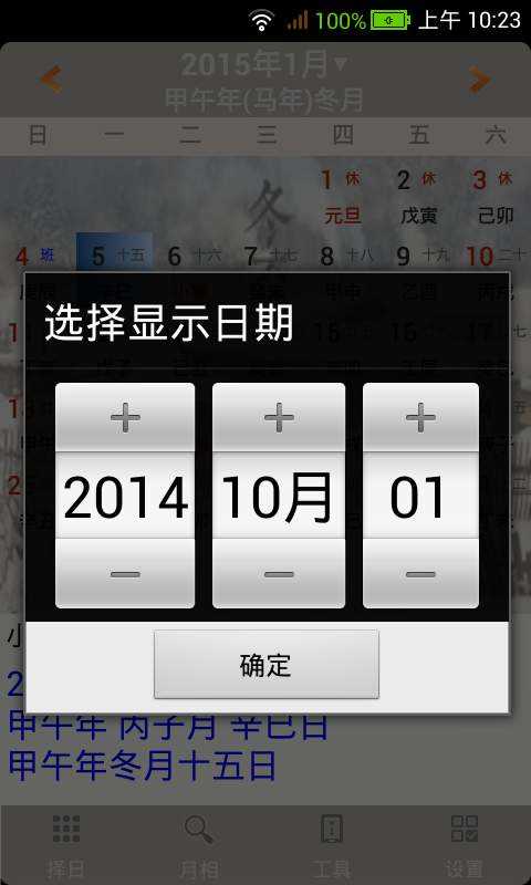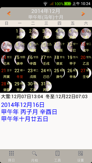 提供常见的日历和老黄历信息之外,还支持显示月相日历。