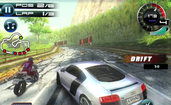 1、选择一辆自己的赛车驾驶,开始竞技比赛,注意弯道超车和漂移。