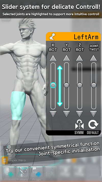 三维模拟器破解版(Easy Poser)自由度非常的大,能够捏出各种各样的人物造型,基本以二次元为主,还能够把人物身上的衣服全部脱下来,小编是抱着艺术的态度去测试游戏的,人物能够实现各种动作,所以那些内心有邪恶想法的玩家,请开始你的表演,游戏非常打发时间,沉迷于捏人中不可自拔!