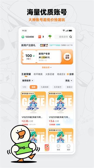 1、在本站下载安装点击打开进入app,在首页中智能推荐优质的游戏账号。