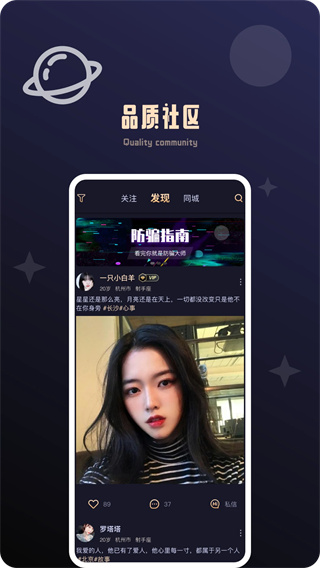 通过定位功能,颜值公园可以精准地为你推荐附近的单身男女,方便你寻找到与自己兴趣相投、生活圈契合的伙伴。