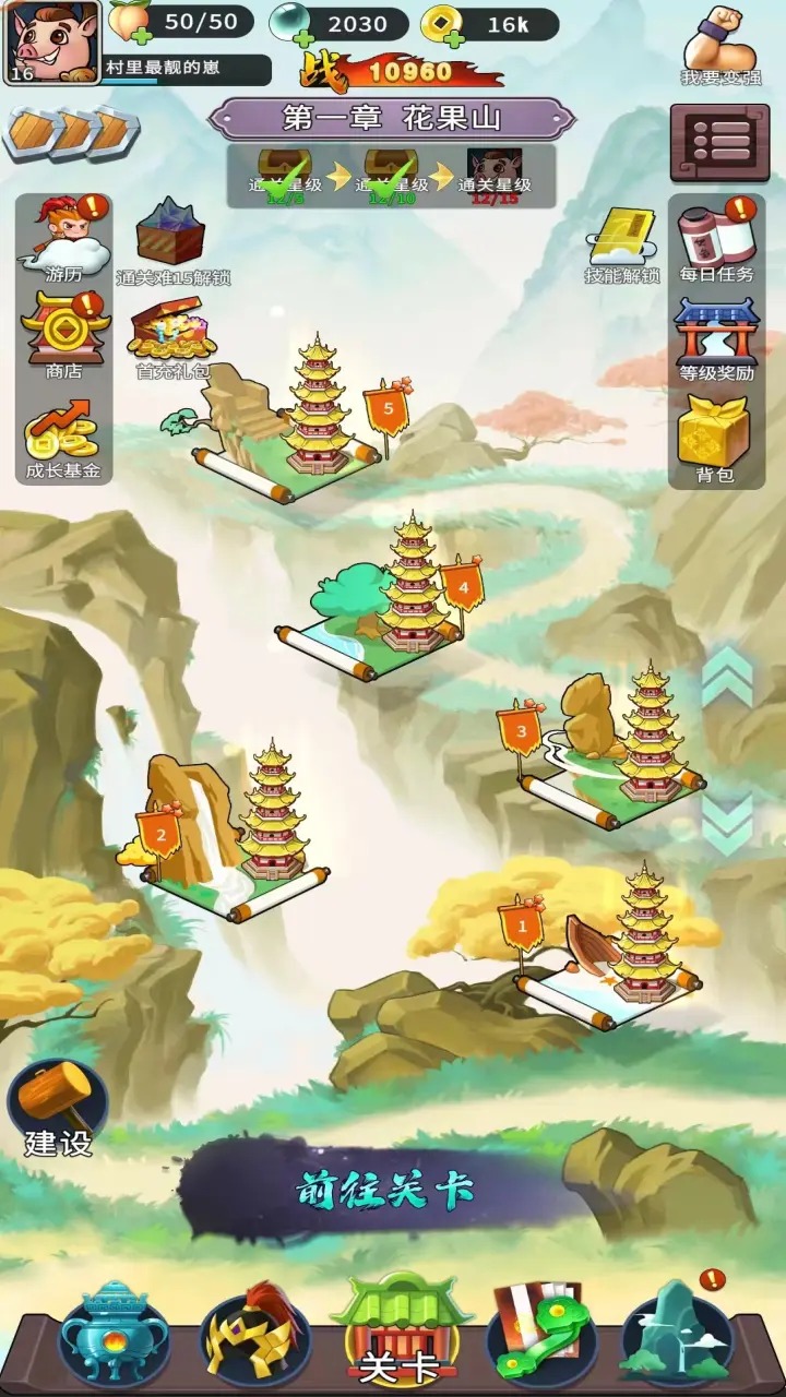 3. 角色养成:玩家可以通过完成任务和挑战,解锁和升级不同的西游英雄,体验不同的战斗风格。
