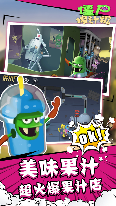 2、各式各样的鲜榨果汁,通过购买装备、抓捕僵尸来进行榨汁,感受别具特色的榨汁方式。