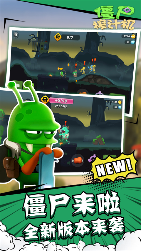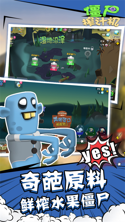 僵尸榨汁机是一款结合了幽默与搞笑元素,带有一定重口味特色的僵尸主题休闲益智手游。在这款游戏中,玩家将体验到一种独特的视觉风格,以轻松诙谐的画风呈现。玩家将扮演一名外星商人,负责经营一家别具一格的鲜榨果汁店。然而,令人意想不到的是,这家店铺所用的原材料竟然是活蹦乱跳的僵尸。为了制作出更多美味可口的鲜榨果汁,玩家需要不断深入野外,捕捉各种稀有的僵尸作为果汁的“新鲜”成分。