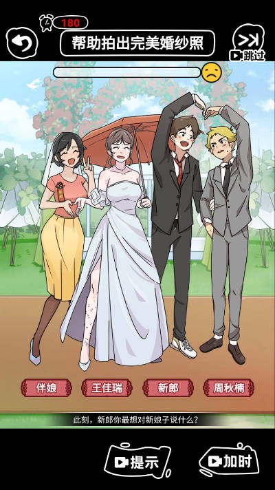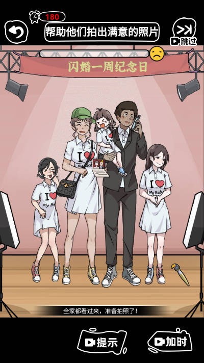 5、出游美照:玩家要将左边女人口袋里的剃刀拖到右侧女人的腿毛处,然后把墨镜拖到左侧男人眯起的眼睛处,依照一系列步骤操作,最终将向日葵拖到右侧女人手上,以完成出游美照的关卡。