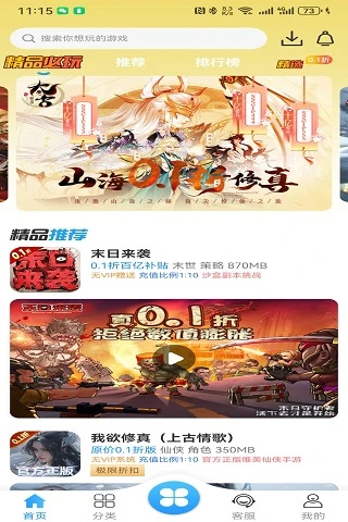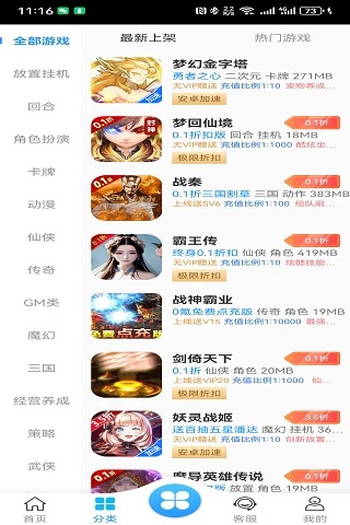 1、打开app后,你可以在分类界面中选择你感兴趣的游戏游玩