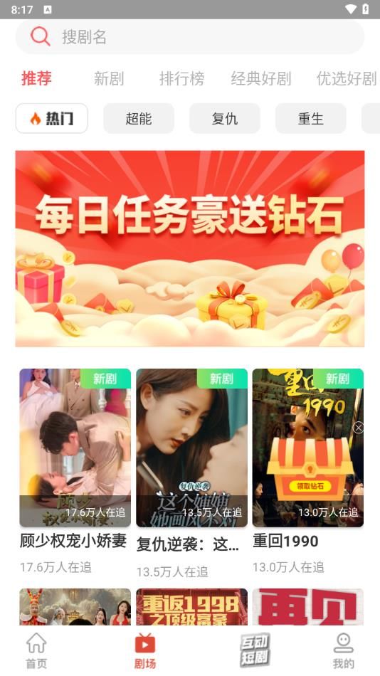 2、有自己感兴趣的短剧资源都可以去搜索,平台的推荐极其靠谱。