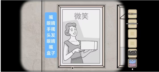 2、和劳拉玩完捉迷藏拿走手里的「玻璃板」,再点击左侧的海报,根据从小到大的提示依次点击画报场景里的物品(如上图)获得「钥匙」。