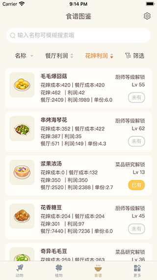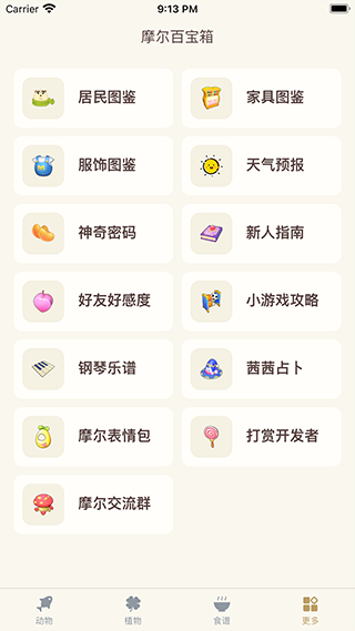 摩尔助手app拥有非常详细的动物、植物、食谱、家具、NPC、服饰图鉴,及详细信息,只需要进入你想要获得的东西界面,就可以详细的看到其详细信息并知道如何才能获得。