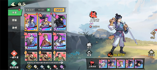 1、收集来自不同门派流派的武侠,打造个性化阵容
