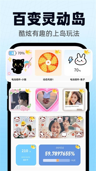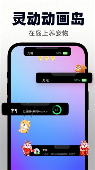 灵动小组件app用户可以自由设置灵动岛的大小、位置,以及显示的内容,从而打造出独一无二的手机界面,除了基本的通知提醒功能外,还为用户带来了“灵动宠物”这一独特玩法。