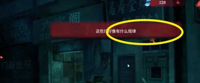 在【易寿堂殡葬】店门口,大门上方有一横排闪烁的灯,全亮表示开始,然后是各个颜色逐一闪烁,记住这个顺序。