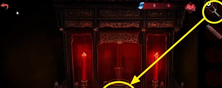 开启【六宝阁】的彩珠盒子后获得【纸剪刀】,将【纸剪刀】放在【六宝阁】内左侧的香炉处,把剪刀传送给王娇彤。