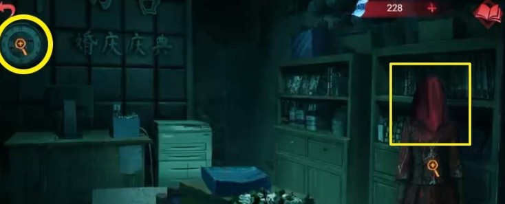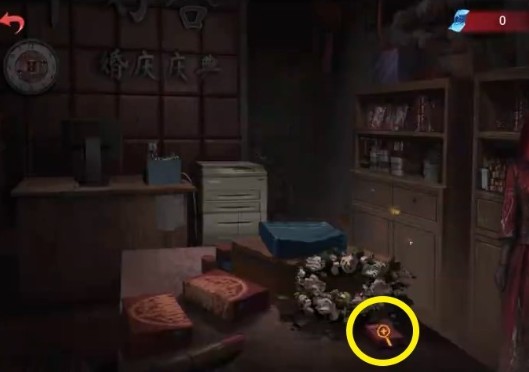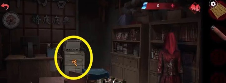 点烟剧情触发后,【易寿堂殡葬】的大门会自动打开,这里申墨卿无法进门,只能王娇彤进去解谜。进入易寿堂殡葬后,右侧柜子里有本书,打开书获得钟表的【分针】。