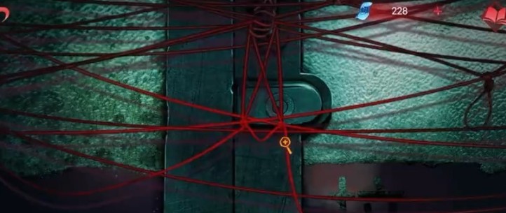 按照之前的解谜打开婚庆店的喜字盒后,在盒子底部可以找到两幅图案,这里是婚庆店门口月老雕像手上红线的提示。