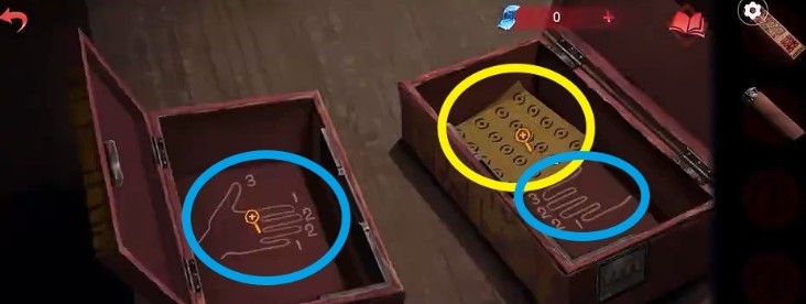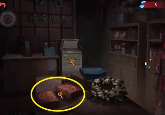 通过王娇彤获得彩灯的顺序后,进入【六宝阁】,右侧桌子上可以拾取到【打火机】,然后点击盖子上有彩色珠子的盒子,这里需要按照正确的顺序按下彩色珠子。