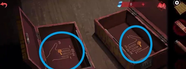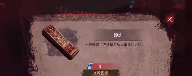 打开盒子后,获得【鞭炮】和【纸铜钱】,以及两个盒子底部的两幅手指图案,这是婚庆店门口月老手指上的红线谜题提示。
