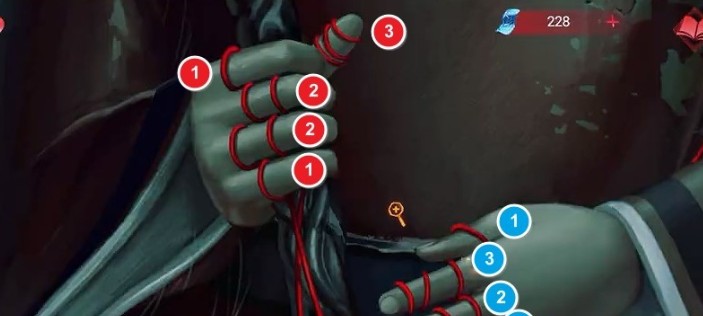 来到婚庆店门口的月老雕像处,点击月老的手开始缠红线,这里是需要按照申墨卿那边的提示在月老的每个手指头上缠对应几圈的红线。