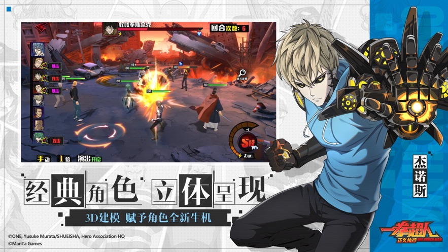 一拳超人正义执行一款质量不错的漫改游戏,玩法简单,经典回合制玩法于动漫元素相结合,是一拳超人动漫粉丝们不可错过的漫改佳作。