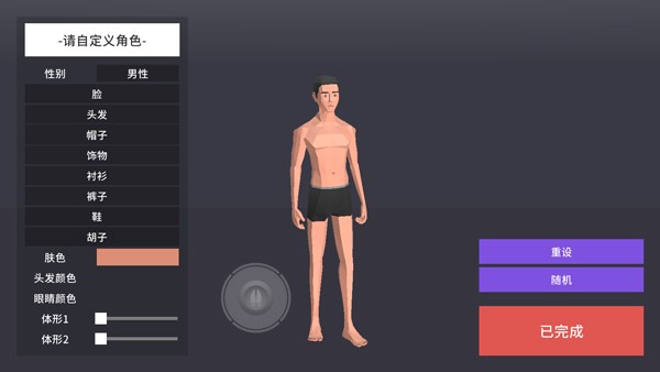 4、进入游戏后,需先自定义角色,可选择角色性别、脸、头发等,然后点击已完成;