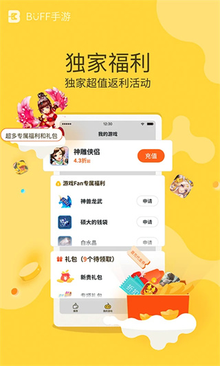 BUFF手游app游戏盒内有超多好玩的游戏,玩家能在里面轻松找到自己喜欢的游戏,还有超多福利给用户带来不一样的爽感,感兴趣的用户可以在本站下载软件体验一下。