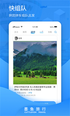 墨鱼旅行是一款很好用的旅行服务平台软件,购买景区门票,预定酒店、查看旅行攻略和路线等,这些都在墨鱼旅行app上面能找到,解决你的一切旅行问题,让你出游玩的开心。
