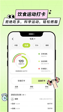 2、制定每日热量消耗目标和轻量化运动,用户要去不断的坚持,每日进行记录才行;