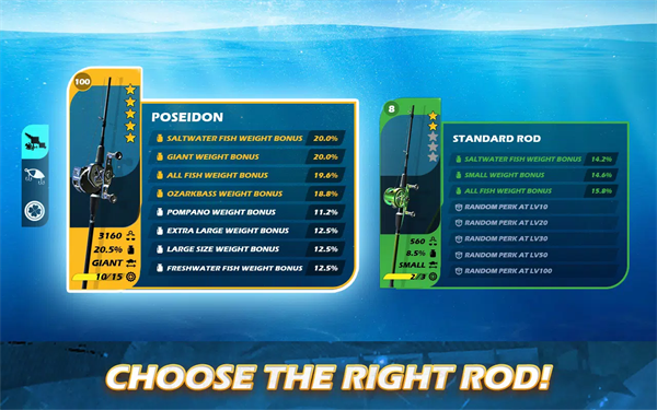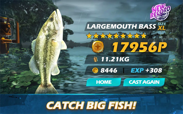 6、钓到的鱼重量越重,稀有度越高,评分越高,玩家需努力提升自己的得分排行。