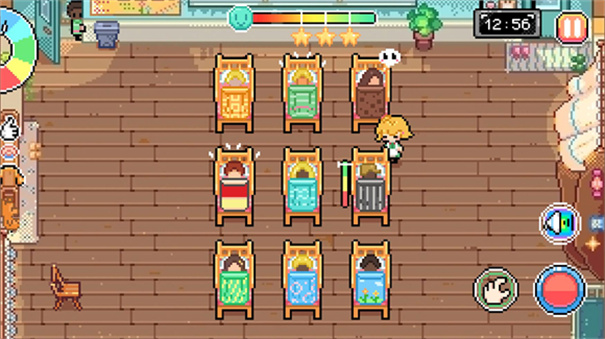 在本款手游中玩家要扮演一名老师帮助孩子们入睡,在午餐时间有几个孩子需要安抚,各种道具和物品供你选择,更多有趣的游戏关卡会带给你新的体验,不断克服各种困难,帮助孩子们安然入睡,并且手游中采用了非常经典复古像素画面以及轻松的背景音效,让玩家可以很好地在游戏中进行放松。