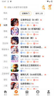 2、在首页以及找游戏页面,为玩家提供了海量的游戏资源,最新上新、精品游戏以及H5畅玩等都有。