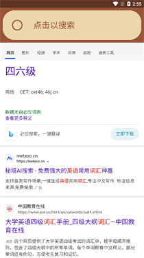 1、搜索功能:进行网页搜索,默认使用必应搜索引擎。