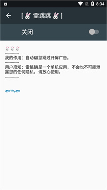 雷跳跳是一款类似“李跳跳”的跳广告工具软件,支持开源、自定义规则导入。雷跳跳app的功能和之前的李跳跳几乎一样,甚至说可以比李跳跳更强。无需root权限,不会泄露任何关于用户的信息隐私。自动为你跳过一切应用带来的广告,如开屏广告、摇一摇广告、弹窗广告等等,有了雷跳跳,再也不用担心玩手机一直被各种广告骚扰了。