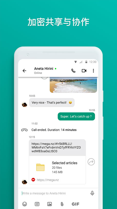 1、使用MEGA自带的安全聊天进行端到端的用户加密通讯,包括全方位隐私的视频和音频通话。