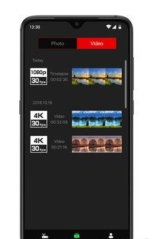 手机拍摄界面主要有:显示当前的模式(可随时切换模式)、切换前后置摄像、是否循环,拍摄按键。分别显示手机和设备电量、帧率、张数、总运行时间、媒体库等。