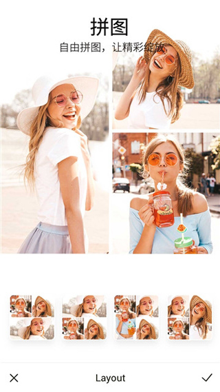 将你的照片拼接起来,通过布局、镜像、旋转等元素重新组合照片,让你充满乐趣。只需简单的操作,拼接出你的故事。