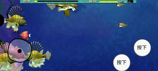 3、左上角有一个积累进度条,当黄色的进度条满格时,你就会变成更大的鱼,同时你的能力等级也会上升,非常好玩。