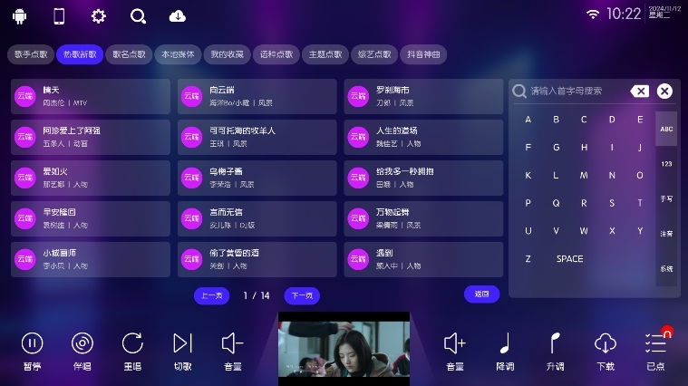 1、用户可以通过歌手名、歌曲名、语种、风格等多种方式搜索并点播歌曲。