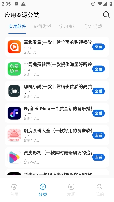 3、资源分类清晰明了,如娱乐、影音、工具、学习、社交类,查找筛选更便捷。