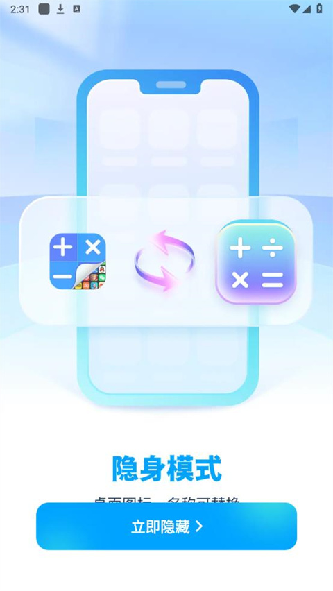 应用隐藏计算器app是一个隐藏应用的软件,用户可以把不想被他人看到的应用、游戏等在该软件当中进行隐藏。