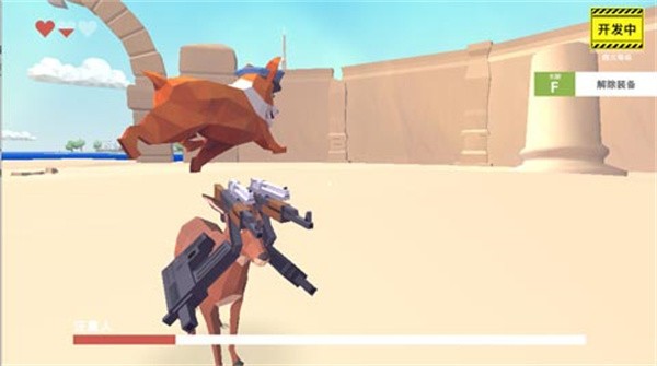 4、双手的汽车都被引爆后,汪星人就失去了机甲,只能进入最终形态和你肉搏,不过实际上第三阶段毫无难度,汪星人只会一边打转一边向你逼近,而你在他脚下的时候则完全不会受到伤害,只要输出就好啦~