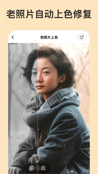 4、软件在的老照片复原方面表现出色,可通过AI技术可以重现当年的绝世容颜。
