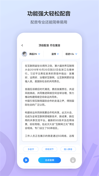 3、【强大智能语音合成,丰富便捷编辑功能,成就品质配音】