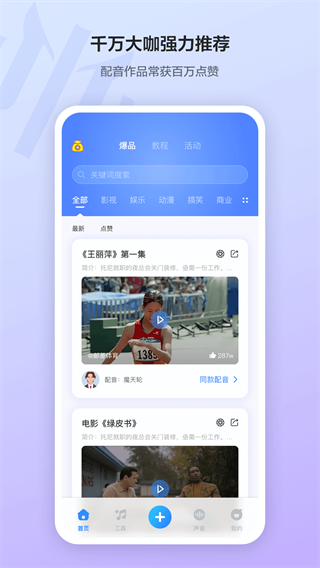 1、在本站下载安装app,在软件的首页我们可以看到很多同款配音,其中就有影视、娱乐、动漫等等。