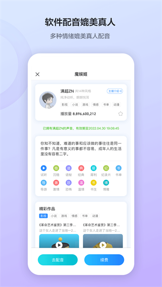 魔音工坊手机版app是一款AI配音工具软件,软件能一键将文本转换为音频,它能帮助用户快速、高效制作高质量的音频,从而给短视频、有声书等高效配音,提供给用户一个高质量的配音方案。魔音工坊手机版app每天都会更新很多的素材,供用户们配音,这些都是免费提供给用户的哦,不管你是想要用于企业宣传片还是商铺广告都能够轻松使用。