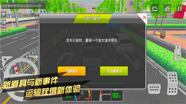 2、设有多种不同的任务和挑战,玩家需要按时完成货物投递、安全驾驶等任务,面对复杂的道路和天气条件,提高玩家反应能力和运输管理能力。