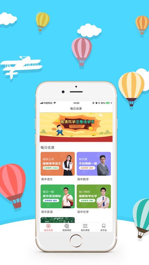 完成学习,每日优课奖励学币,为学生打造实用学习平台。