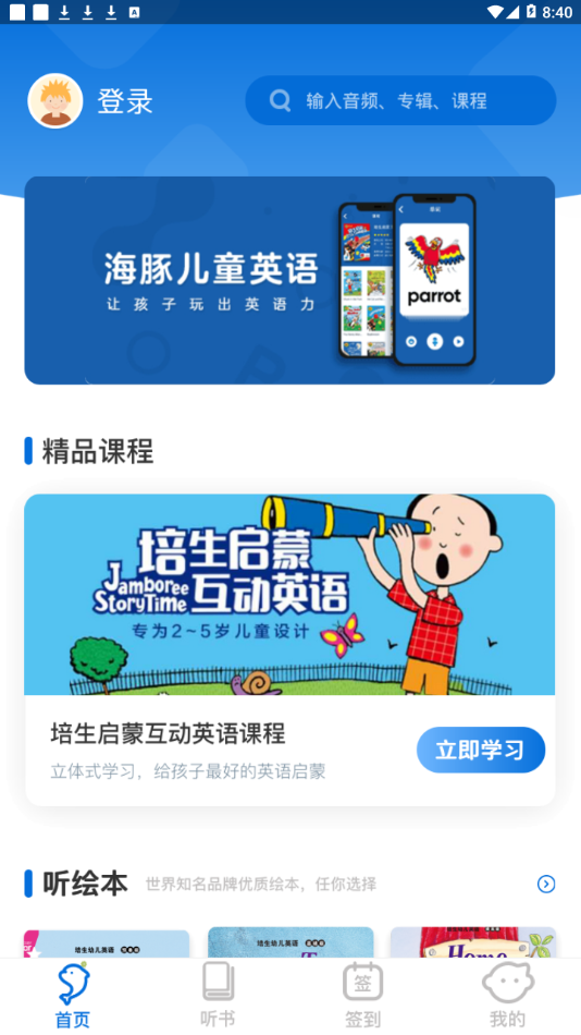 字母入门,词汇拓展,单词短句,视听素材,绘本读物,睡前故事,亲子情景对话一应俱全,多方位提升孩子听说能力。