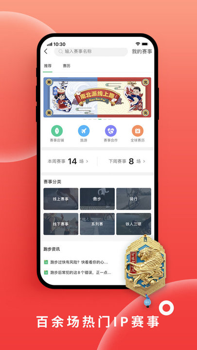无论是5公里的轻松跑,还是马拉松的挑战,咕咚让你无忧完成每一次赛事。全年提供百余场线上及线下的马拉松和骑行活动,帮助你实现目标,收获奖牌,享受运动的快乐。