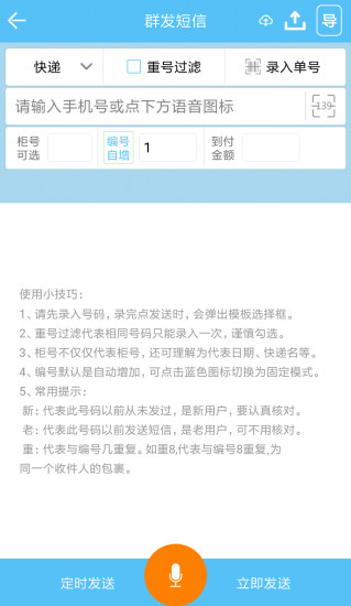 4、每天剩余的快件,可以一键操作再次群发通知,无需再次录入电话号。