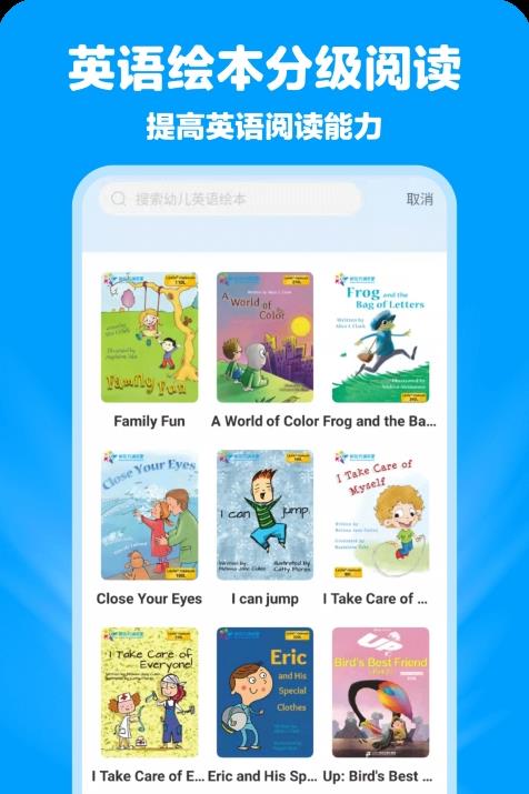 2.分级阅读,从学龄前到小学毕业,满足各个级别孩子的英语学习需求。
